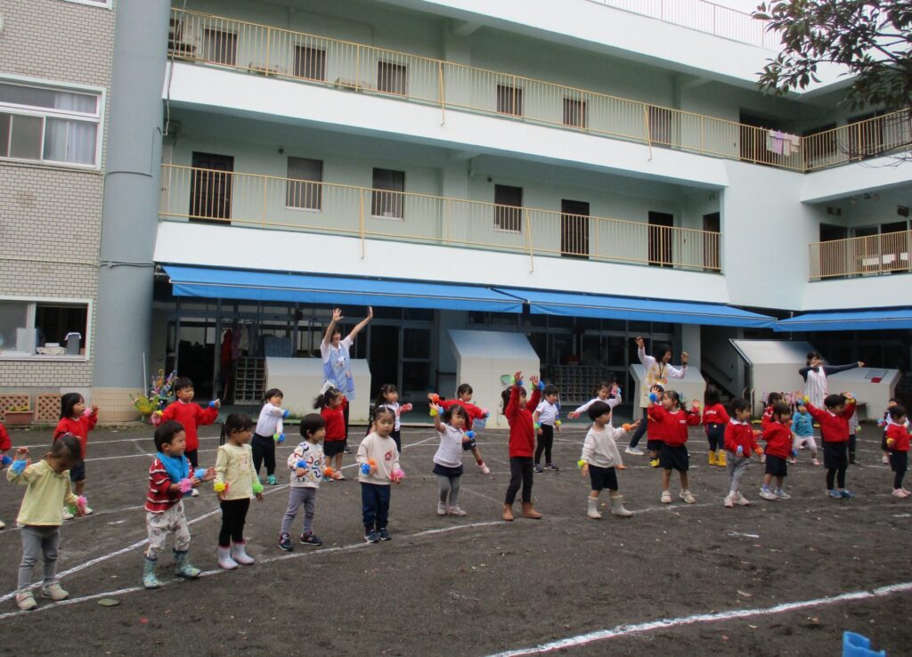 2025年8月23日 夕涼み会 2025年8月28日 ShimizuShin 今年の夏も猛暑続きの毎日ですが、今日はお友だちと大勢のおうちの方に参加いただき、夕涼み会が開かれました。 毎年恒例の杉山兄弟のおふたりによる「シャボン玉ショー」です。たくさんのシャボン玉にみんな大喜びです。 最後に真っ白なシャボン玉を見せていただきました。お友だちみんなの素敵な笑顔が見られました。 今年も素晴らしいシャボン玉ショーを見せてくださった杉山兄弟のおふたりにゆり組代表のお友だちより感謝状を贈りました。 シャボン玉ショーのあとは涼しい室内に場所を移してゲームタイムでボールゲームと魚釣りゲームを楽しみました。 ゲームの後は、全員で「ドラえもん音頭」を踊り、「平和の祈り」をして楽しい一日が終わりました。 Categories: 園の毎日