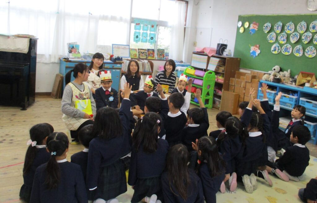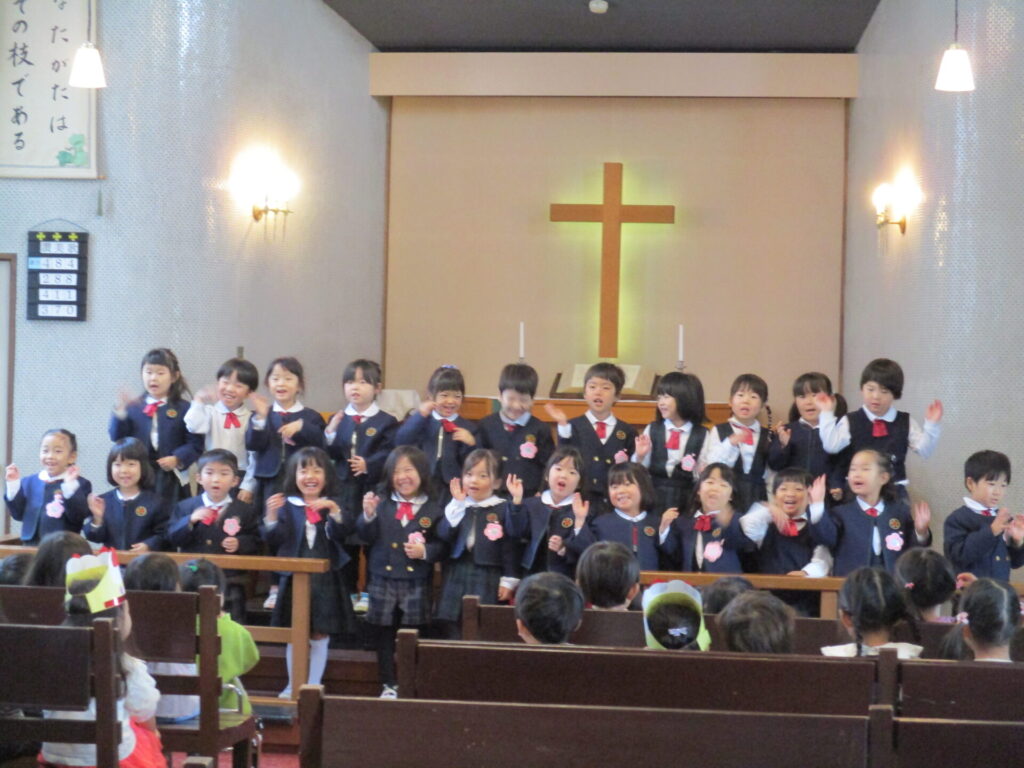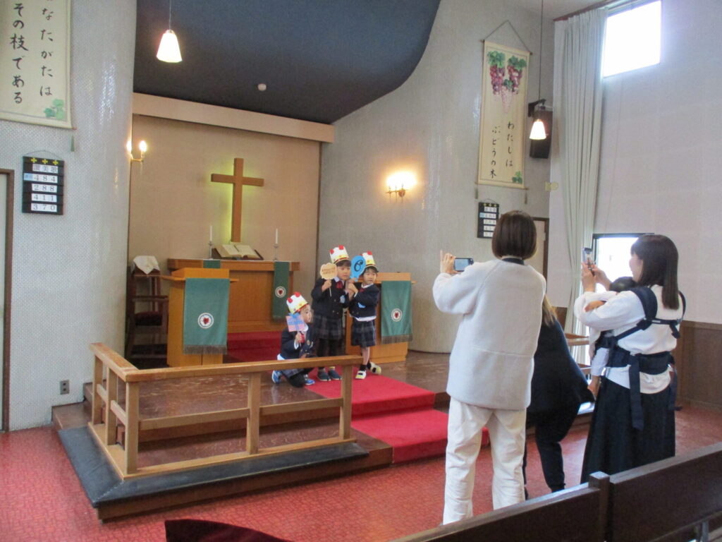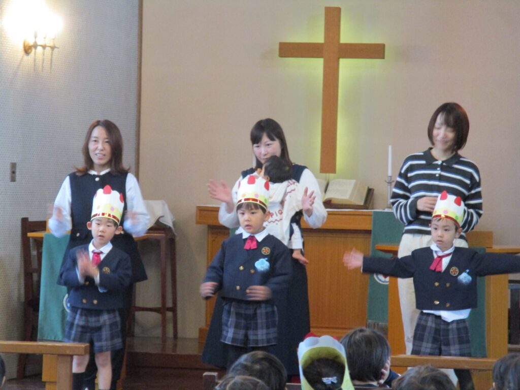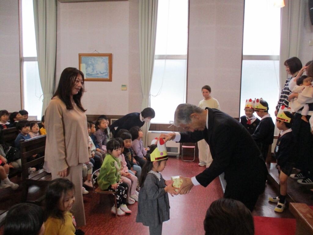 2025年11月19日 お誕生会 2025年11月19日 ShimizuShin ローソクに火が灯され、11月生まれのお誕生会礼拝が始まりました。 讃美歌斉唱、お祈り、そして園長先生のお話を聞きます。 今日は11月生まれのお友だち6名のお祝いをしました。お誕生者はクラスごとに紹介され、園長先生からプレゼントをいただき、祝福を受けます。 今月のゆり組お誕生者からの感謝の発表は「世界中の子どもたちが」です♪ たんぽぽ組誕生者からの感謝の発表は「きのこ」です♪ 誕生者のいなかったさくら組はみんなで「やぎさんゆうびん」を発表しました♪ 今月のお祝いの出し物の担当は先生2名です。「まほうの電子レンジ」の楽しいパネルシアターでした。 クラスごとのお祝いの会も開かれました。ゆり組ではインタビュータイムやじゃんけん列車を楽しみました。 たんぽぽ組でも、みんなで歌を歌ったり、お誕生月仲間などのゲームで楽しいひと時を過ごしました。 最後に礼拝堂でおうちの方やお友だち同士で記念撮影もしました。とても良い一日になりましたね。 Categories: 園の毎日