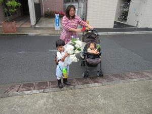 6月12日前日の花の日礼拝で飾ったお花を地域の皆さんに届けます 2014 6/12 年少さんがフレンズ戸塚にお花を届けに行きます 久保井先生に渡しました 先生大喜びで有名人になったようだとおっしゃっていました 病院のお医者さんにお花を渡しました 年長さんは久保井先生に届ます フレンズ戸塚でお花と献金を渡しました 年中さんは共立第一病院に行きました 園の毎日 6月11日の出来事です 6月14日保護者参加日