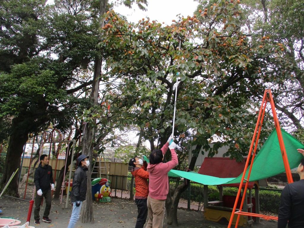 今年度2回目のおやじの会がありました。 今回は園庭の柿の収穫をお願いしました。今年は大豊作!たくさんの実を手際よく収穫してくださいました。 ご参加くださった5名のお父様方、ありがとうございました! -