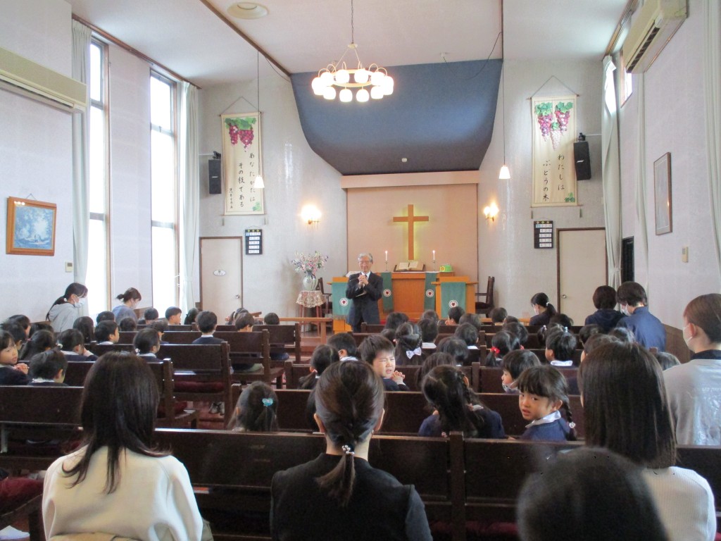 11月生まれのお誕生会礼拝が始まりました。 今月も被災された方々を思い、献金を捧げました。 お誕生者がクラスごとに紹介され、園長先生からプレゼントをいただき祝福を受けます。 今日は11月生まれのお友だち6人と10月生まれのお友だち2人のお祝いをしま... -