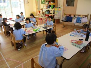 2023年11月22日 収穫感謝礼拝 2023 11/22 秋の実りを神さまに感謝し、収穫感謝礼拝を行いました。祭壇にみかんを捧げて礼拝の席に着きました。 ローソクに火が灯され礼拝が始まりました。 讃美歌斉唱、お祈りをして園長先生からのお話もみんな熱心に聞くことが出来ました。 ゆり組さん、さくら組さんは、収穫感謝礼拝に続くカレー会食の準備の野菜切りの作業も行いました。8名の保護者の皆様にお手伝いで参加してくださいました。 にんじんとじゃがいもを慎重に!上手に!カットすることが出来ました。 園の毎日 2023年11月21日 勤労感謝訪問② 2023年11月24日 カレー会食