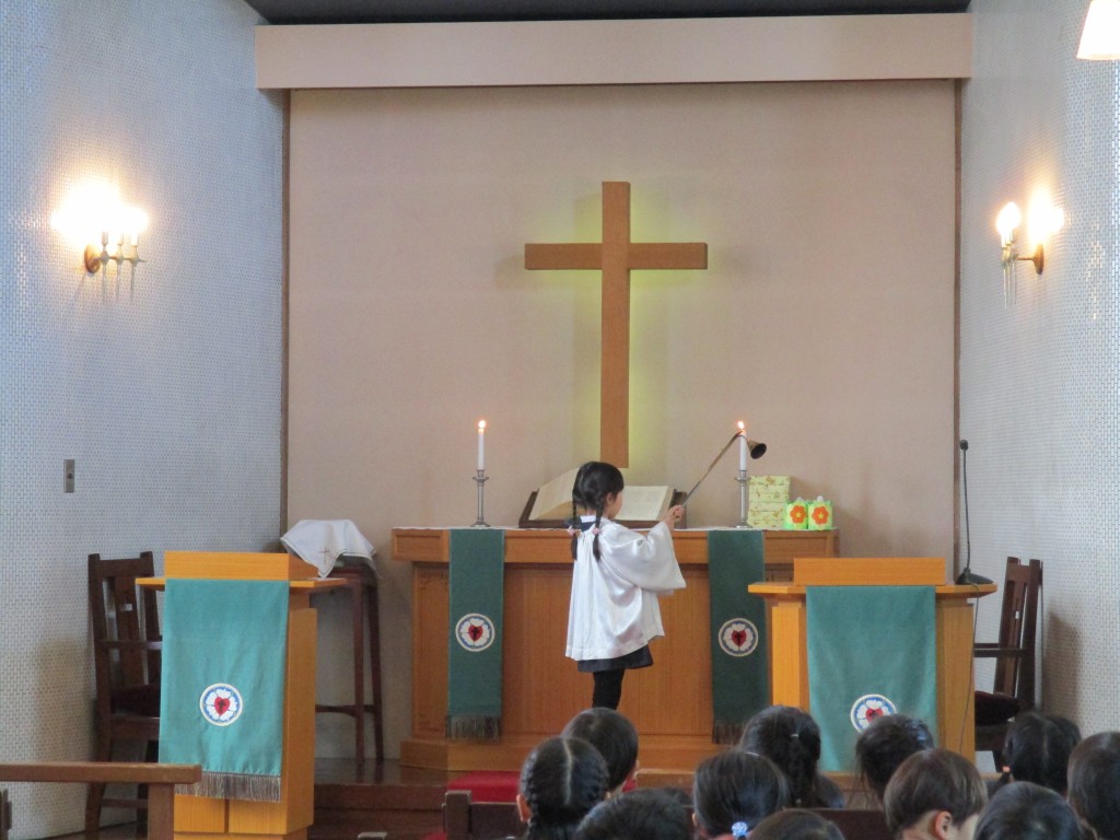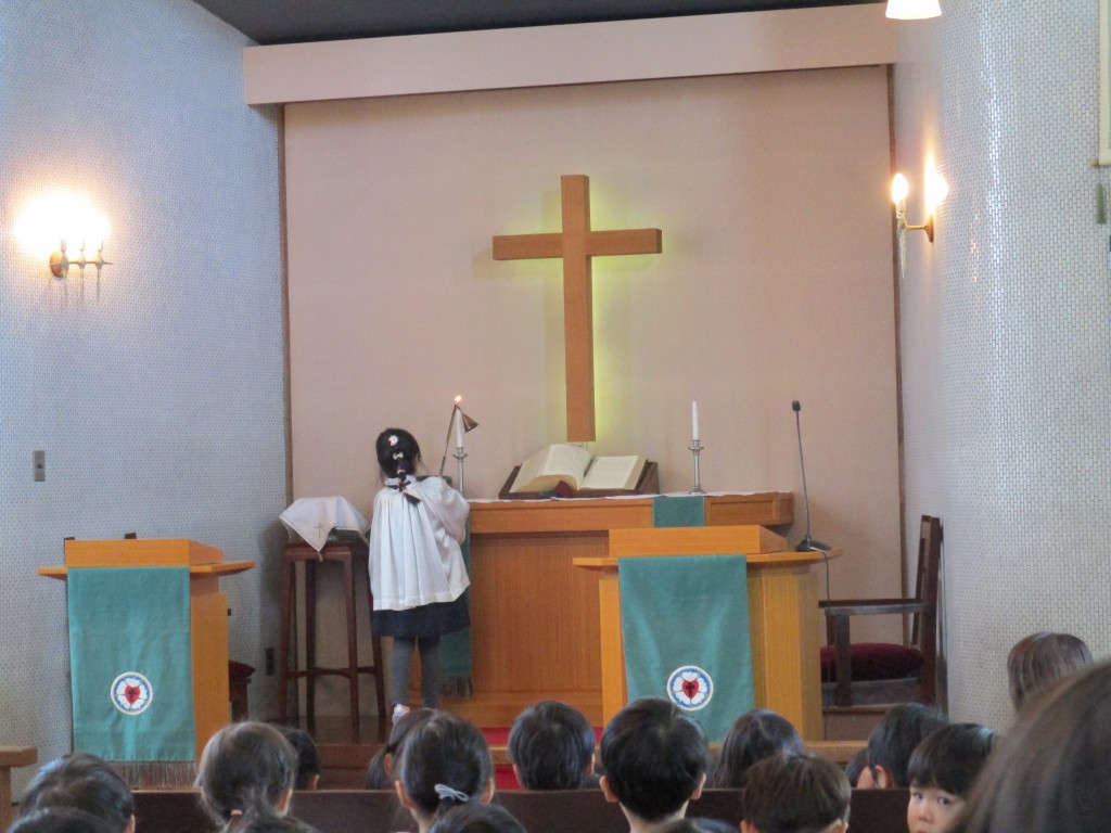 ローソクに火が灯され、3学期の始業式礼拝が始まりました。 久しぶりにみんな揃って、お祈り、讃美歌斉唱、そして園長先生のお話を聞きます。 礼拝の最後に、福島県の児童養護施設から届いたクリスマス献金のお礼のお手紙が紹介されました。 今日は保護者...