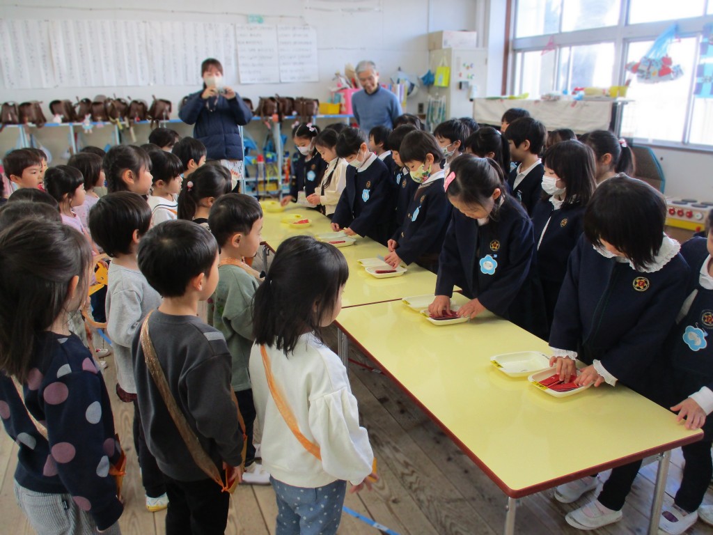 今年は4年ぶりにお餅つきを行いました。昨日、寒い中、ゆり組さんがもち米を研いでくれました。 そして今日は、暖かい日差しのもと、クラスごとに全員が重たい杵を持ってお餅つきをしました。 がんばってついたお餅はおみやげに持ち帰りました。おうちで... -