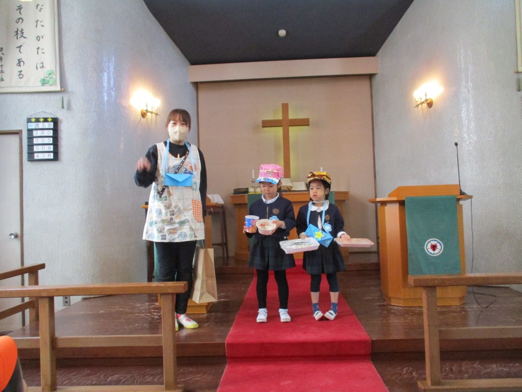 ローソクに火が灯され1月のお誕生会礼拝が始まりました。 讃美歌の斉唱、お祈りの後、園長先生のお話を聞きます。 今月も被災された方を思い、献金を捧げました。 お誕生者がクラスごとに紹介され、プレゼントをいただき、祝福を受けます。園長先生からの... -