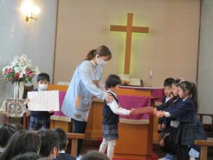 2024年3月13日 大掃除 2024 3/13 今年度も残すところあとわずか、お世話になった園舎に感謝の気持ちを込めて大掃除を行いました。つぼみ組さん、広いマットも隅々まで丁寧に拭き掃除です。 たんぽぽ組さん、一年間毎日お世話になった椅子を丁寧に拭いています。 さくら組さんは、お掃除をする時も息がぴったり!一列にそろって床掃除です。 心も体も大きく成長したゆり組さん、窓の高いところまでピカピカにしました。 園の毎日 2024年3月8日 園児お別れ会 2024年3月14日 卒園式総練習