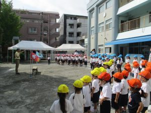 お祝いの出し物は先生2名による「お芋堀りへ行こう!」です。たくさんのお芋を掘った後、全員でお芋の手遊び歌を歌いました。
