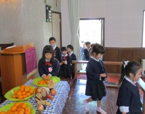 2024年11月27日 親子手作り講習会 2024 11/27 降園後、希望者がぷれいるーむに集まり、親子手作り講習会が開かれました。 おうちの方と一緒に楽しいひと時を過ごし、すてきなクリスマスリースが出来上がりました。 園の毎日 2024年11月27日 収穫感謝礼拝 2024年11月29日 カレー会食