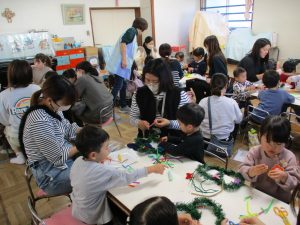 ゆり組さん、さくら組さんはそろってぷれいるーむでの会食です。今日は園長先生も一緒!楽しくいただくことができました。