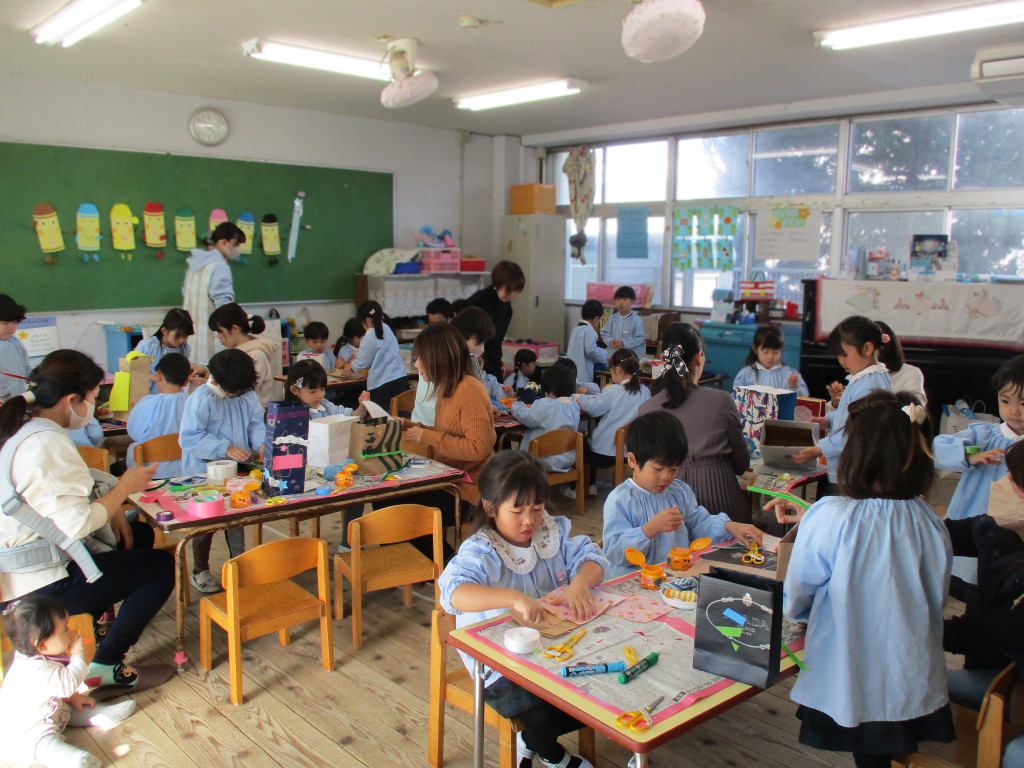 さくら組さんでもお店屋さんごっこのかばん屋さんの商品を作りました。いろいろなデザインの素敵なバッグができました。