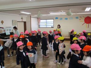 讃美歌斉唱、園長先生のお話に続いてみんなでお祈りをします。