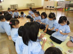 2025年4月22日 こいのぼり 2025 4/22 4月も後半に入り、今年も園庭にはこいのぼりが泳ぎ始めました。園庭で遊ぶお友だちも嬉しそうに眺めていました。 金井公園に飾る予定の大きなこいのぼり製作も全クラスのお友だちが順番に行いました。親子遠足の時に見ることができるとのことなので、楽しみですね! 園の毎日 2025年4月15日 父母の会総会 2025年4月22日 イースターエッグ作り