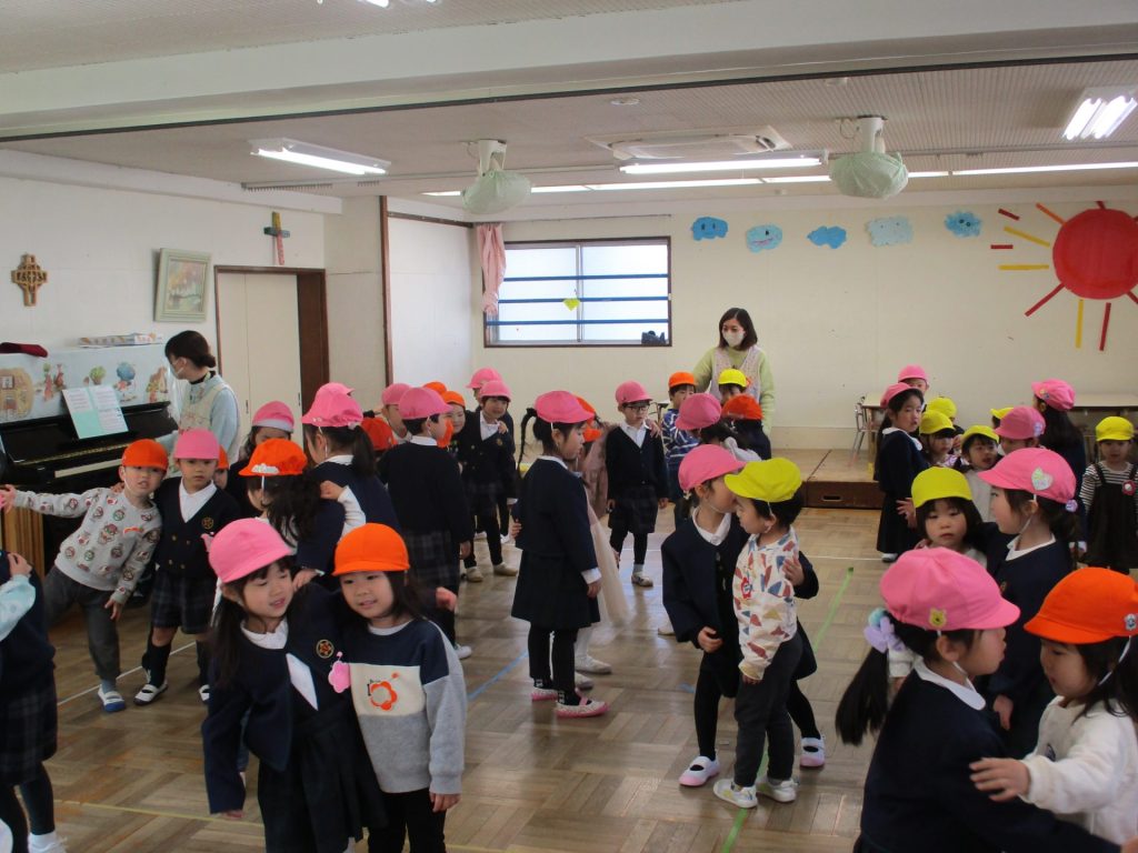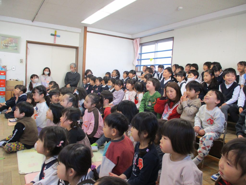 全園児が礼拝堂に集まり、「クリスマスってなあに」のお話を聞きました。 イエス様… -