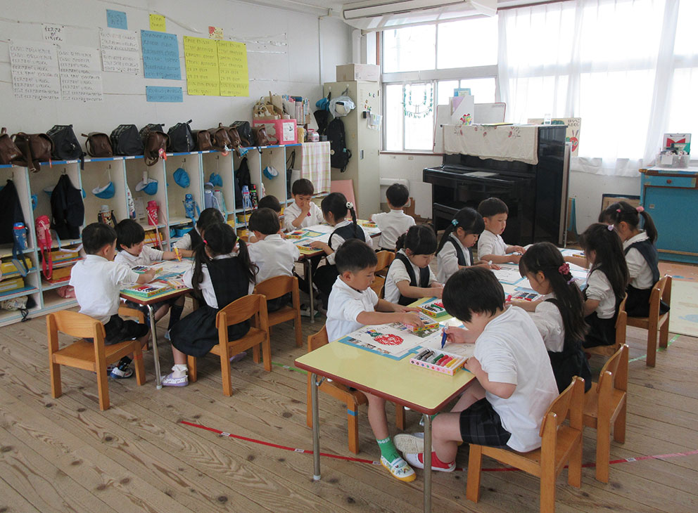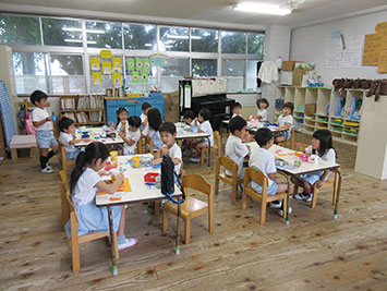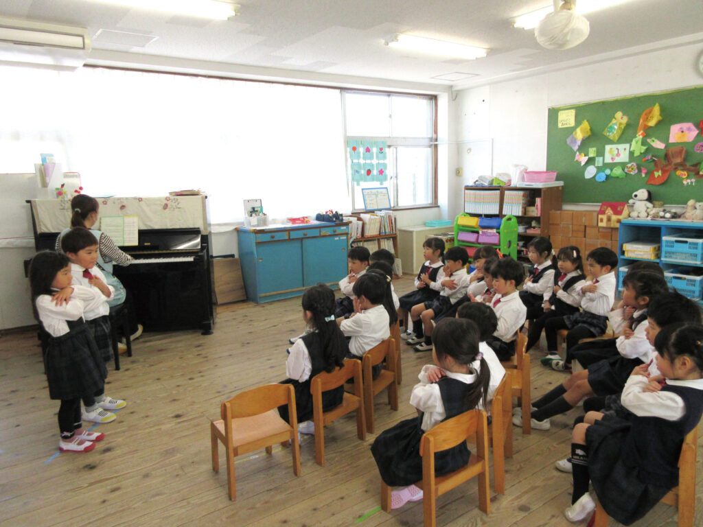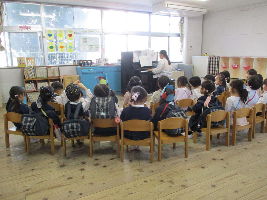 母親参観日、年長組苗植え、避難訓練、親子遠足、尿検査
