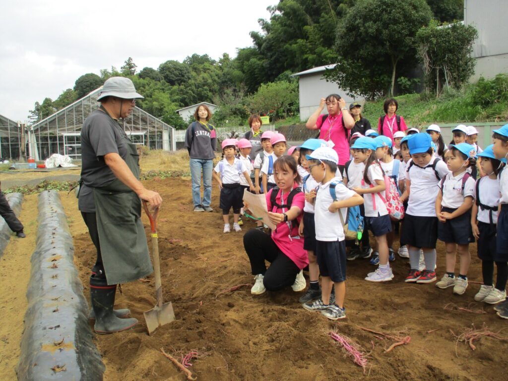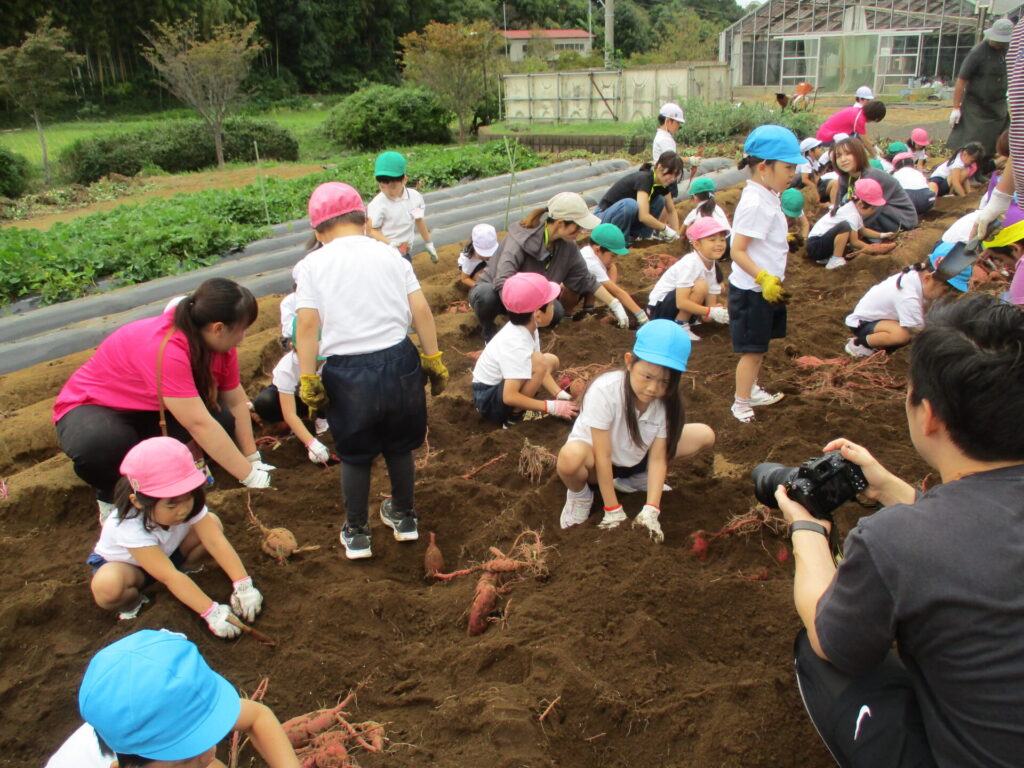 いよいよお芋ほり開始です!!お手伝いの保護者の方も一緒に、がんばってお留守番のたんぽぽ組、つぼみ組さんの分まで、沢山のさつまいもを収穫することができました。