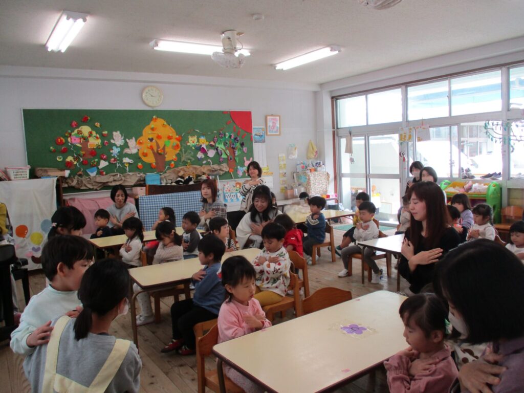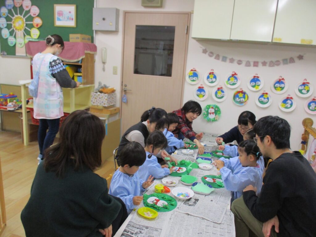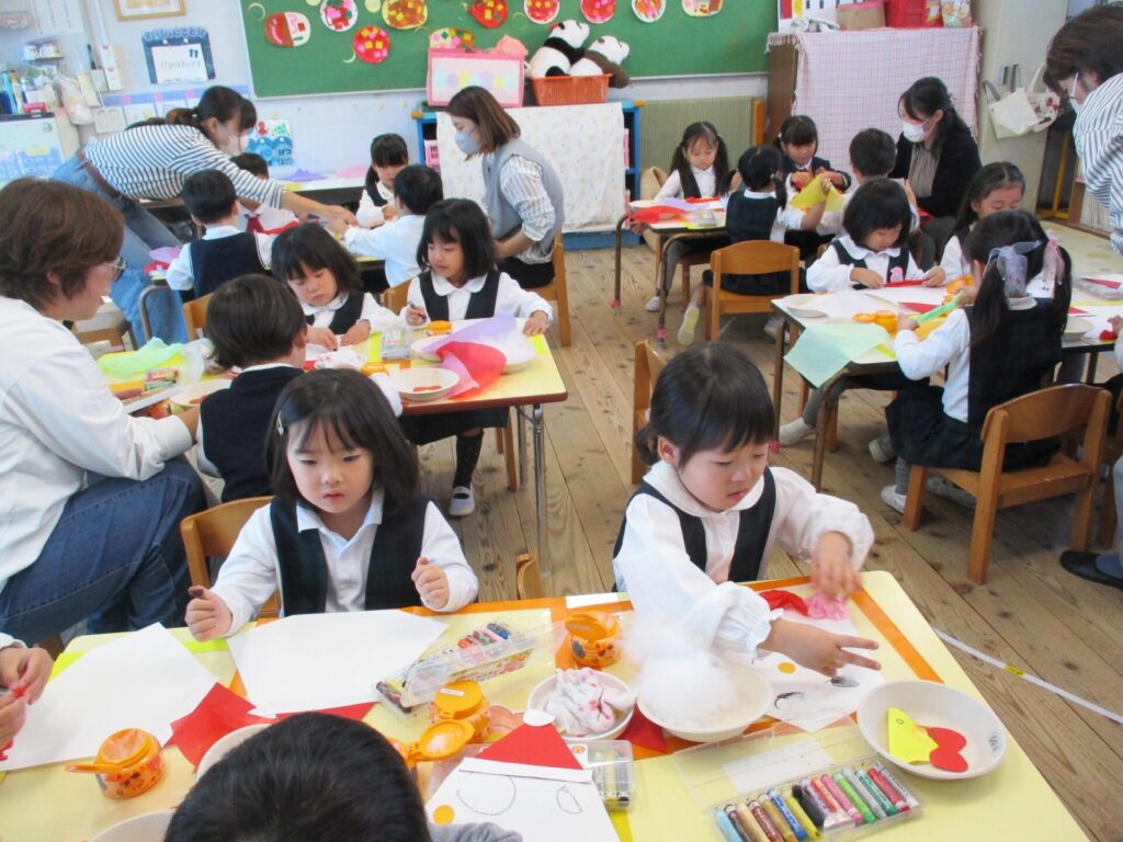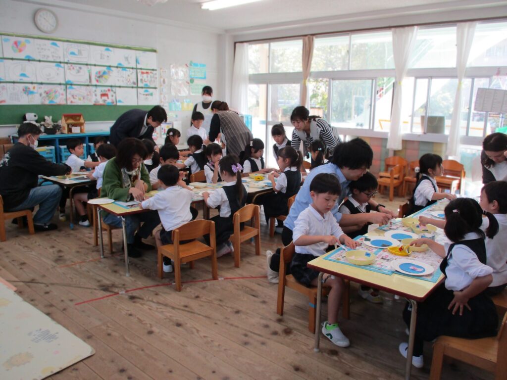 2025年11月10日~13日 保育参加日 2025年11月13日 ShimizuShin 今週は3日間に分かれて保護者の方に来園いただき保育に参加していただきました。つぼみ組、登園後の朝の自由遊びの様子です。 たんぽぽ組の朝の集まりの様子です。落ち着いた朝のひと時、今日は保護者の方も一緒です。 さくら組では、トナカイとサンタクロースの製作が行われました。保護者の方のアドバイスも受けながら、様々な材料を使って仕上げることが出来ました。 ゆり組のクリスマス製作です。春に育てた蚕のまゆを使って、細かい作業にも熱心に取り組みました。 つぼみ組さんのクリスマスの紙皿製作の様子です。雪だるまやカラフルな飾りで素敵な仕上がりとなりました。 たんぽぽ組では、クリスマス製作の他、かわいらしいキノコの製作もしました。みんなとっても楽しそうでした。 さくら組さん、園庭に出てバイキンボールを楽しみました。保護者の方が投げるボールに当たらないよう上手に逃げ、とっても盛り上がっていました。 ゆり組さんが大好きなゲーム、ドンじゃんけん!今日は保護者の方も一緒でいつも以上に楽しんでいました。 3日間とも全員が園庭で遊ぶことが出来、お友だちはもちろん保護者の方も一緒に体を動かしていただき、楽しい保育参加日となりました。参加くださった保護者の皆様、どうもありがとうございました。 Categories: 園の毎日