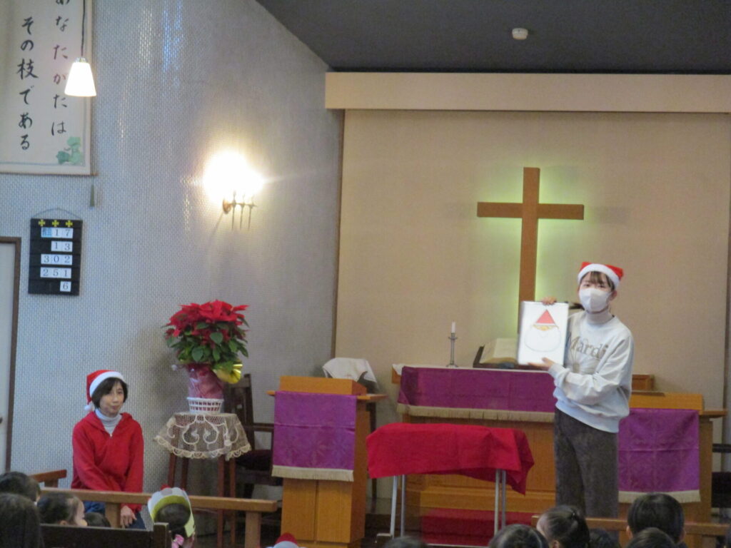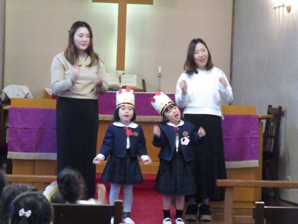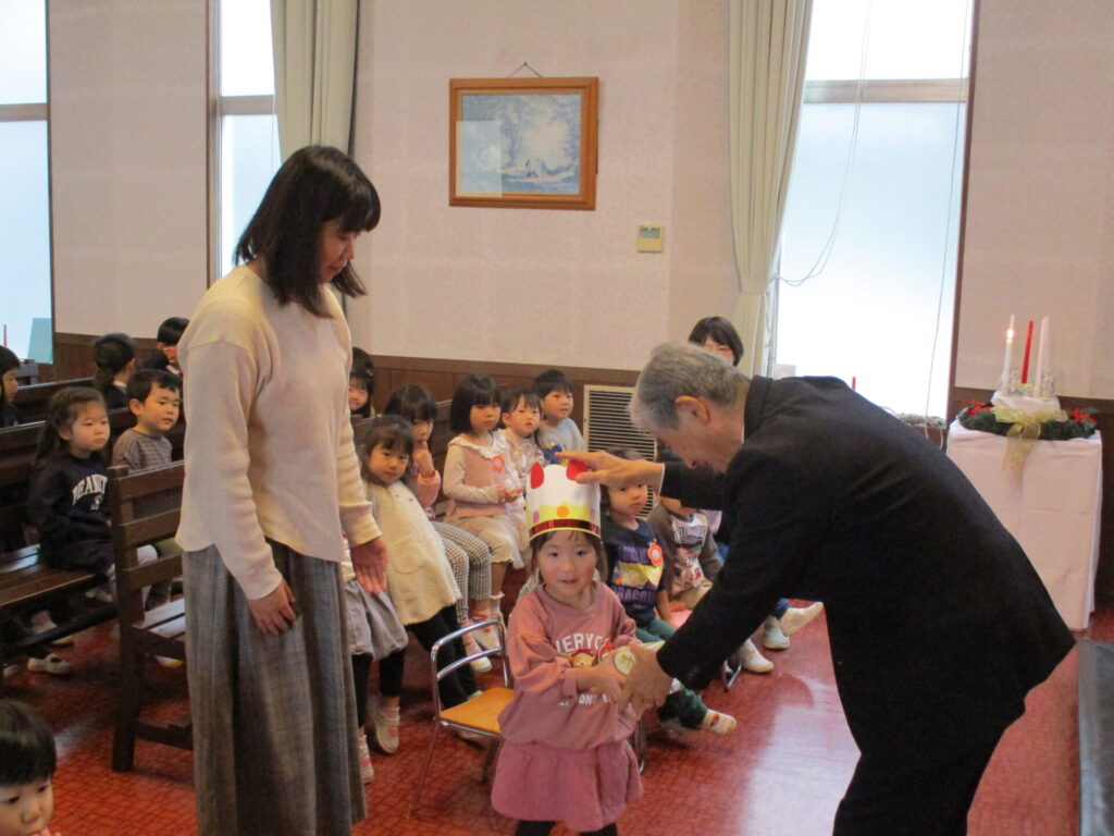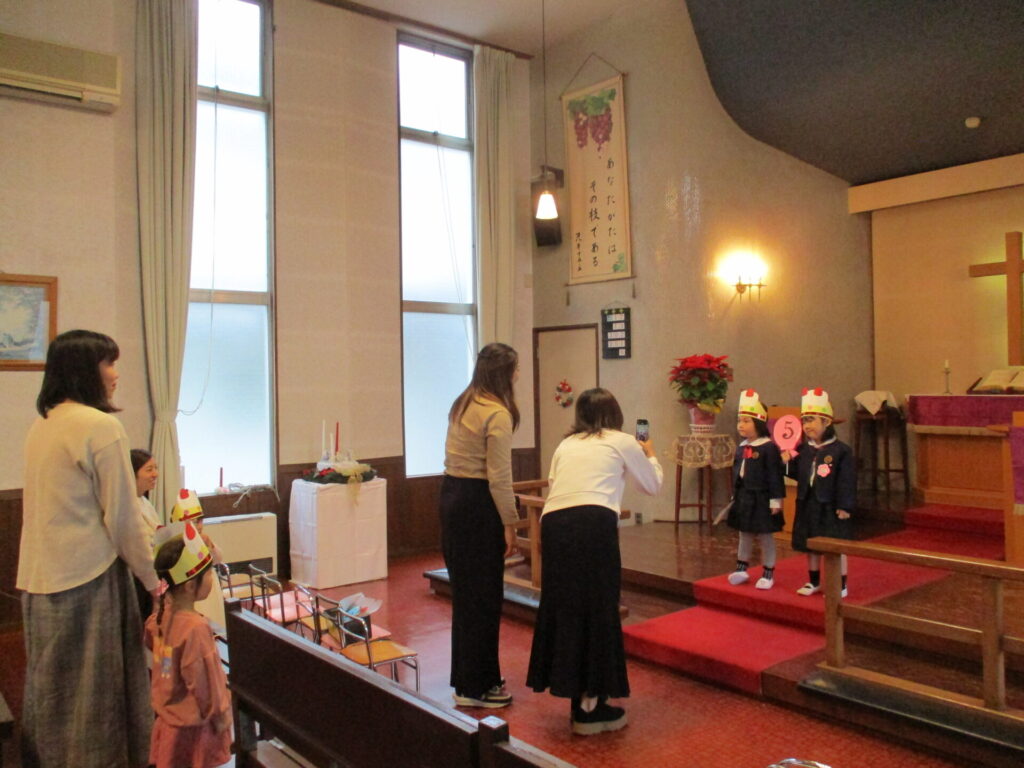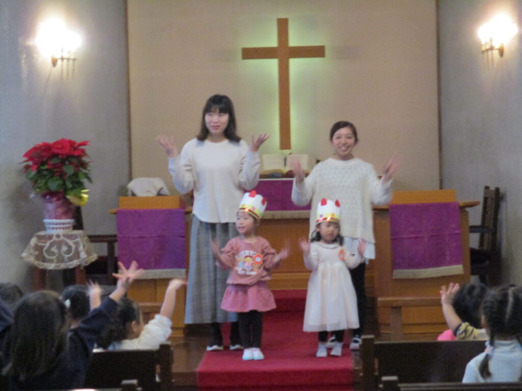 ローソクに火が灯され、12月生まれのお誕生会礼拝が始まりました。