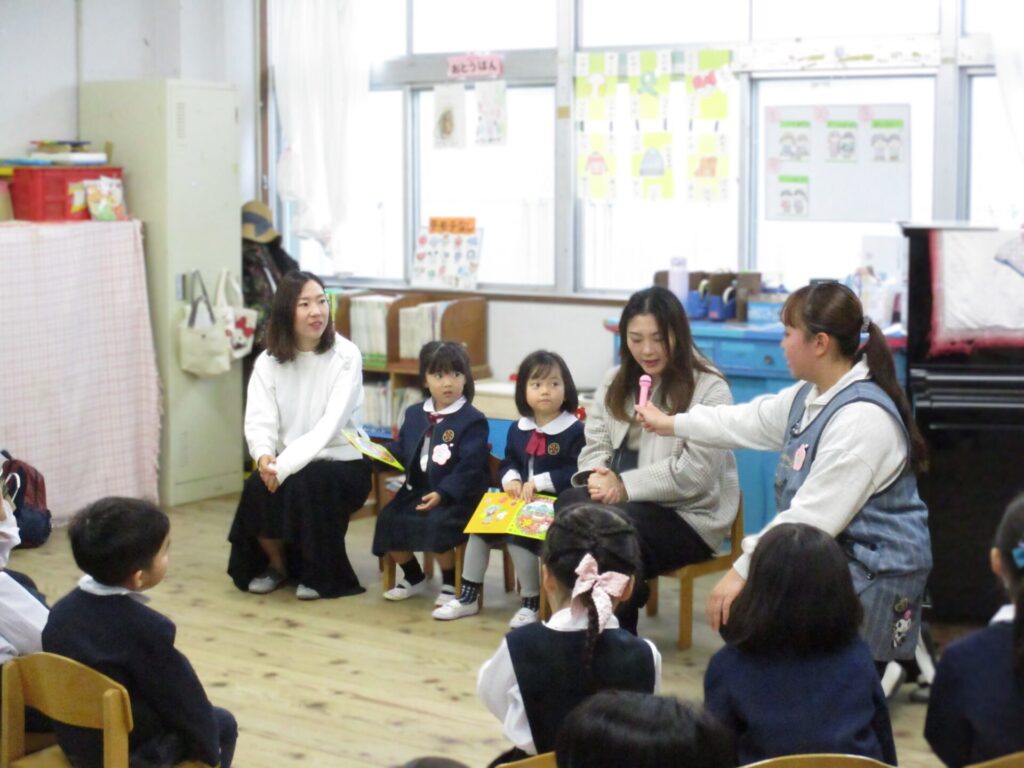 各クラスに分かれてのお祝いの会も開かれました。さくら組さんでのお誕生者のお友だち、保護者の方への質問コーナーの様子です。