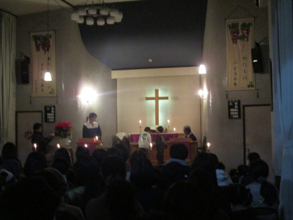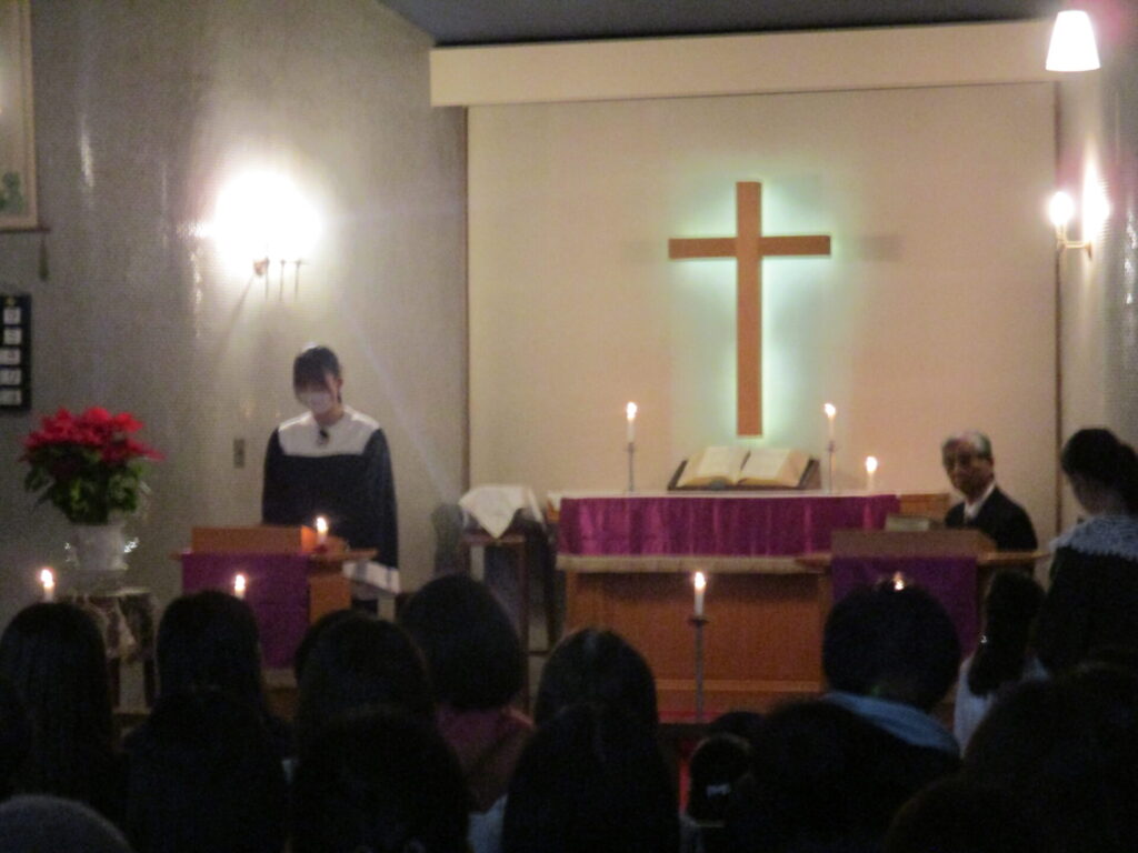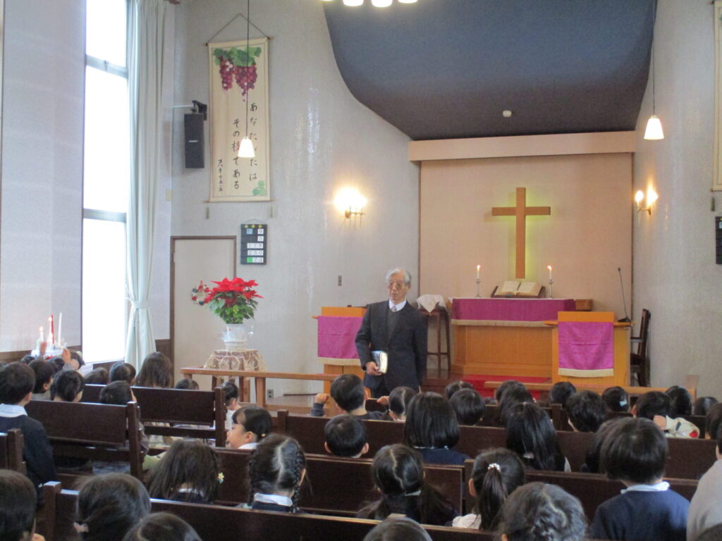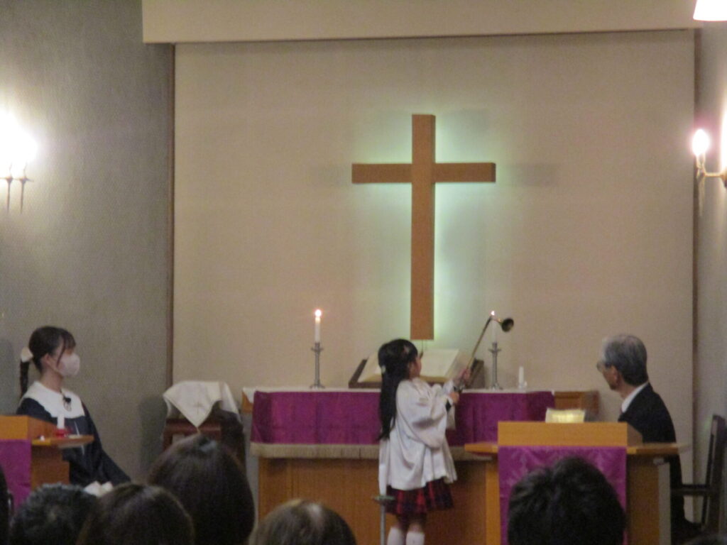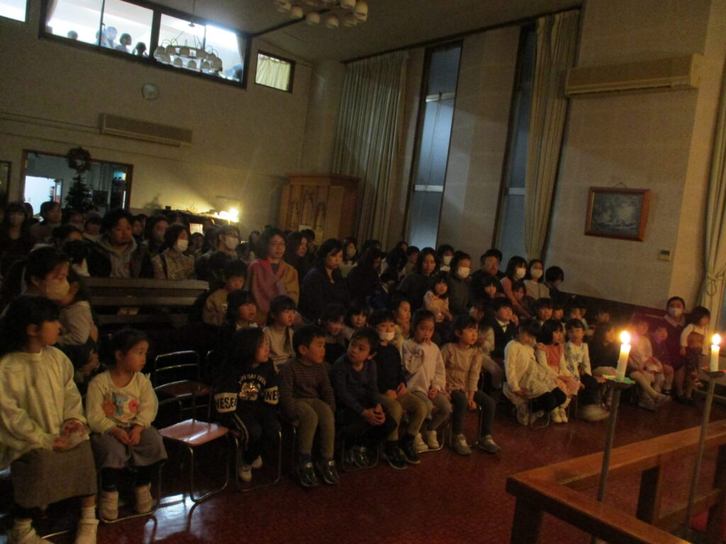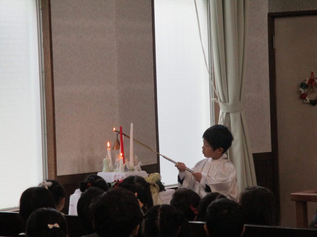 2025年12月19日 2学期終業式・ローソク礼拝 2025年12月27日 ShimizuShin 2学期終業式礼拝が始まりました。今日もアドベントクランツにも火が灯されました。 2学期はたくさんの行事があり、みんな充実した日々を過ごし、体も心も大きく成長することが出来ました。 夕方にはローソク礼拝が守られました。 礼拝堂は消灯し、ローソクに火が灯され、厳かな雰囲気の中での礼拝となりました。 保護者の方やご兄弟のみなさんが大勢集まってくださいました。 被災された方々を思い、心を込めてクリスマス献金を捧げました。 礼拝の後のお楽しみ、音楽サークルの保護者の皆様によるハンドベルとトーンチャイムの演奏会がありました。お友だちも一緒に歌ったり、演奏に合わせて体を動かしたり、とても素敵な1年の締めくくりのひと時を過ごすことができました♪ Categories: 園の毎日