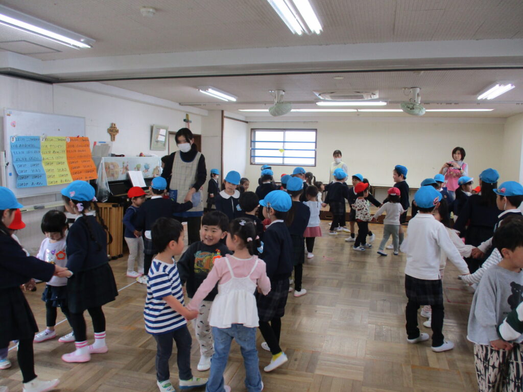 2026年2月24日 ゆり組・たんぽぽ組・つぼみ組交流会 2026年2月26日 ShimizuShin ゆり組さんの卒園が近づき、今日はゆり組、たんぽぽ組、つぼみ組の交流会が開かれました。「いつまでもともだち」を楽しく踊りました。 「あなたをさそうよ」ゆり組さんがリードし、上手に楽しく踊りました。 お弁当の時間も交流タイムは続きます。いつもと違うメンバーで、緊張するお友だち、おしゃべりを楽しむお友だち、とても良い時間を過ごすことが出来ました。 Categories: 園の毎日