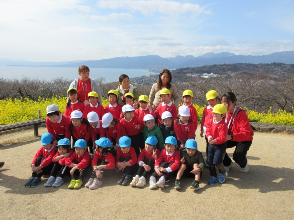 2026年2月19日 卒園遠足 2026年2月26日 ShimizuShin ゆり組さん、待ちに待った卒園遠足の日を迎えました。園庭で朝のお祈りをして出発です。 二宮駅を降りで、吾妻山までは坂道や長い階段をがんばって歩きました。 吾妻山の頂上に到着、礼拝のあと、ちょうど見ごろを迎えた菜の花や素敵な景色をバックに記念撮影をしました。 様々な遊具で仲良く楽しい時間を過ごしました。 楽しみにしていたローラーすべり台、長い階段を登って何度もすべるお友だちもいました。 お弁当の時間です。グループごとにおしゃべりをしながら楽しい時間を過ごしました。 少し疲れたけれど、帰りも電車と徒歩で元気に園まで戻りました。またひとつ、素敵な思い出が増えましたね。 Categories: 園の毎日