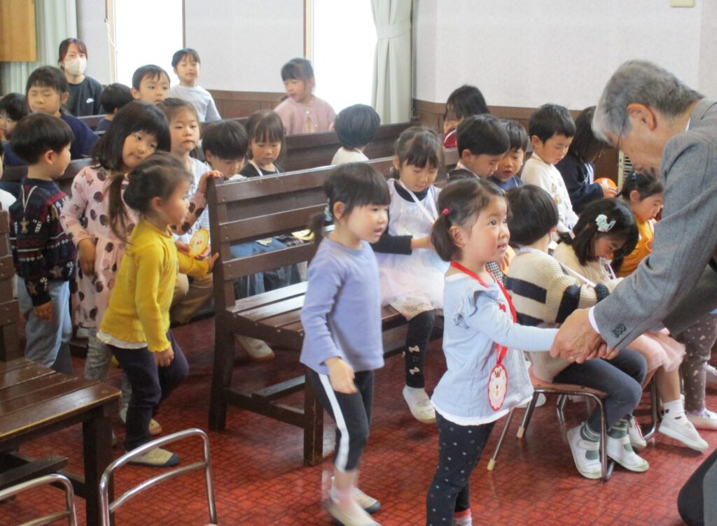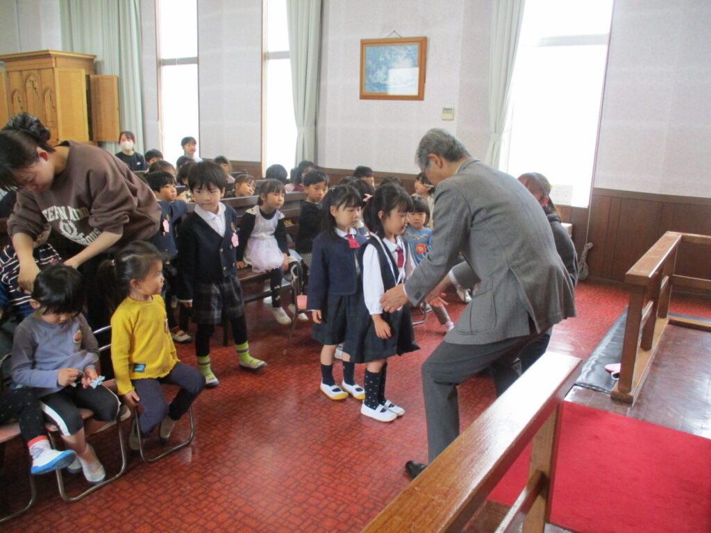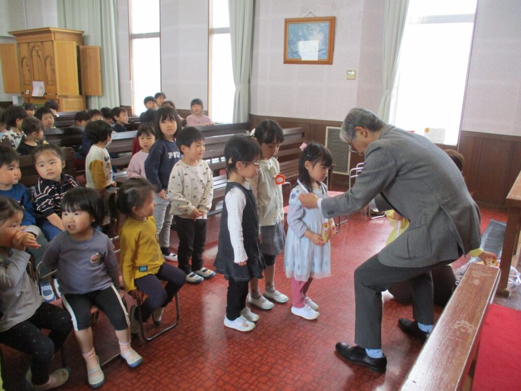 2026年3月19日 3学期終業式 2026年3月20日 ShimizuShin ローソクに火が灯され、3学期の終業式礼拝が始まりました。アコライトは今日もさくら組のお友だちです。 ゆり組さんが卒園して少しだけ寂しい終業式ですが、みんな元気な声で讃美歌斉唱、お祈りをし園長先生より今年度最後のお話を聞きました。 終業式後には一人ひとり、園長先生より1年間がんばったご褒美のメダルを胸にかけていただきました。さくら組さん、4月からは年長ゆり組さんですね。楽しみです。 たんぽぽ組さん、4月からは年中さくら組さんです。制服姿を楽しみにしていますね。 つぼみ組さんは年少たんぽぽ組さんへ進級します。新しく入園するお友だちが加わり27名でスタート予定です。 Categories: 園の毎日